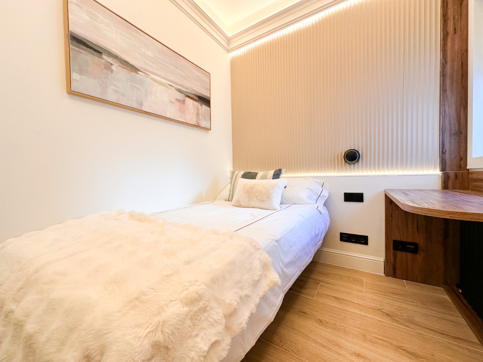 La vivienda ofrece una distribución funcional y equilibrada. La zona social se integra de manera cómoda, aprovechando la altura de la planta para potenciar la entrada de luz natural. Cuenta con dos habitaciones, ambas de buen tamaño, y dos baños completos, proporcionando confort y practicidad tanto para residencia habitual como para inversión.